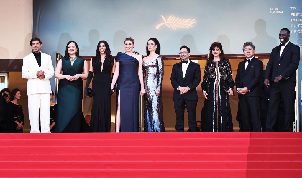 5月25日,在法國南部城市戛納舉行的第77屆戛納電影節(jié)上,主競(jìng)賽單元評(píng)委抵達(dá)閉幕式紅毯。新華社記者 高靜 攝