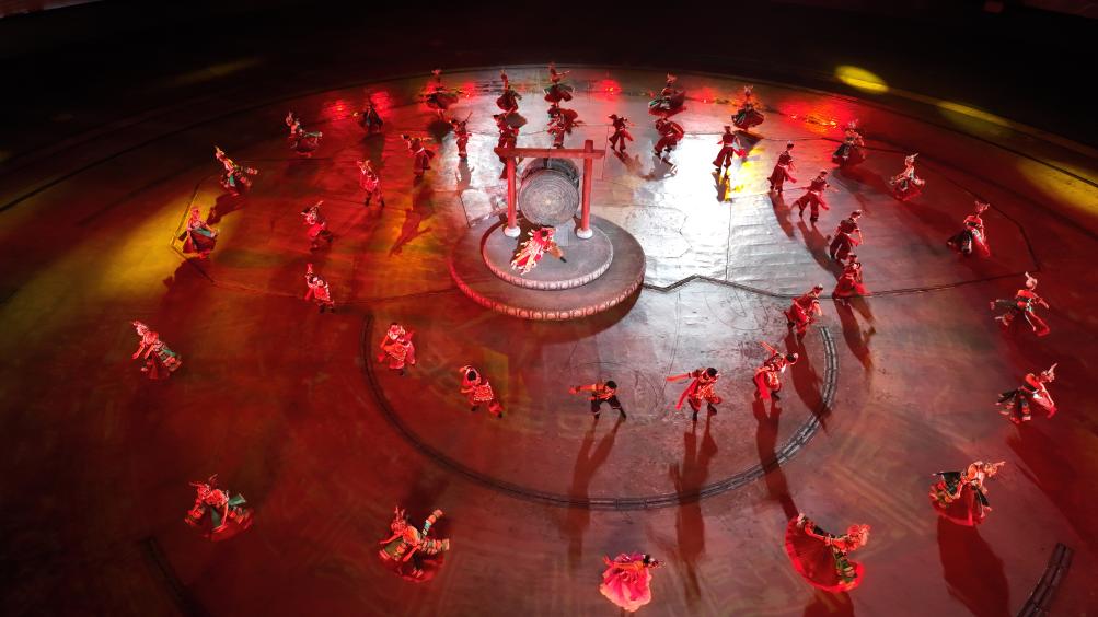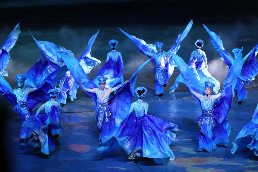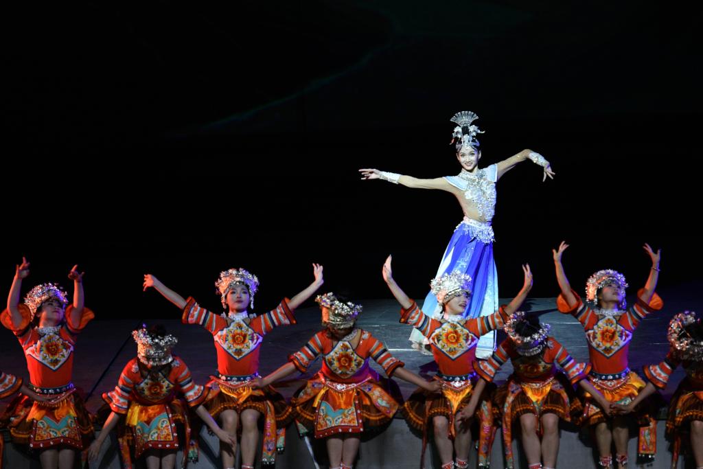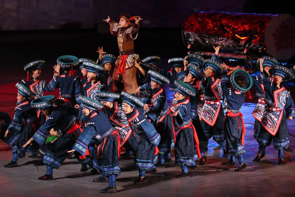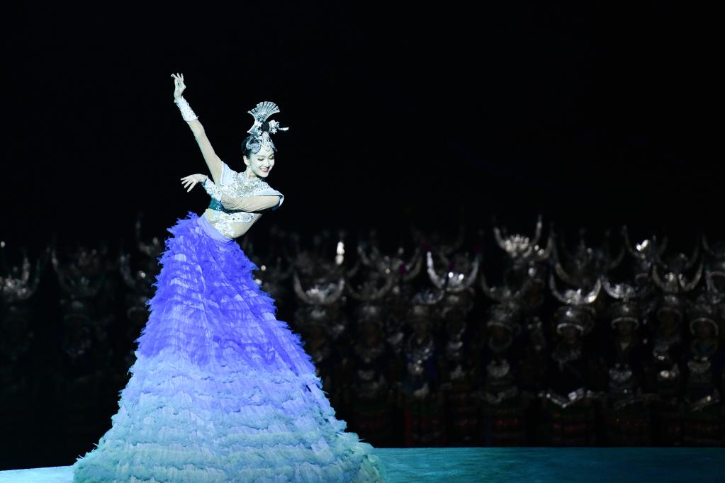9月20日,演員在貴州省雷山縣大塘鎮(zhèn)表演苗族歌舞詩劇《仰歐?!?。新華社發(fā)(楊武魁攝)