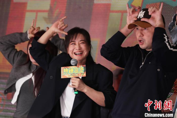 《熱辣滾燙》的主創(chuàng)團隊與觀眾合影。中新網(wǎng)記者 張亨偉 攝