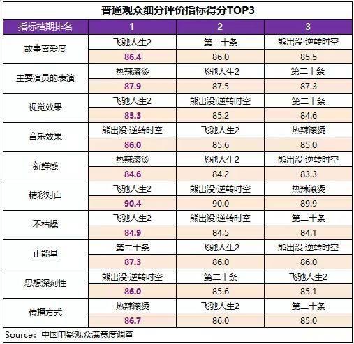 在專業(yè)觀眾評價體系中,《第二十條》的類型創(chuàng)作、創(chuàng)意新穎度、情節(jié)合理度、主要演員的表演、不枯燥、思想情感的深廣度和傳播方式7項指標(biāo)得分均居檔期首位,《熱辣滾燙》的情緒情感感染力、精彩對白和健康積極的價值觀念為第一名,《飛馳人生2》的視覺效果、音樂效果獲得檔期最高評分。另外,《我們一起搖太陽》的主要演員的表演、思想情感的深廣度、健康積極的價值觀念和傳播方式得分也進(jìn)入檔期前三位。