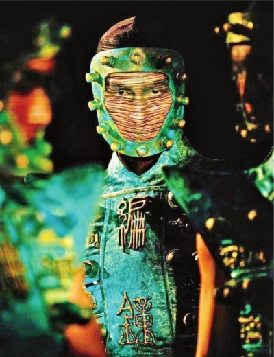 楊麗萍介紹,《荊楚映象》以“荊楚”為題,展現(xiàn)中華民族文化和中國人文精神的豐富性與多樣性,表達浪漫主義精神。此次在舞臺上將直觀地呈現(xiàn)那些華麗的想象——頂天立地的青銅巨門、高達6.5米的巨型編鐘、精美的玉覆面、靈動的車馬人物出行圖。屈原《九歌》世界中的巍巍眾神,還有后羿是怎樣射日的、山鬼是怎樣騎豹的、鳳凰是怎樣浴火重生的……也將在舞臺上以大家難以想象的方式一一呈現(xiàn)。