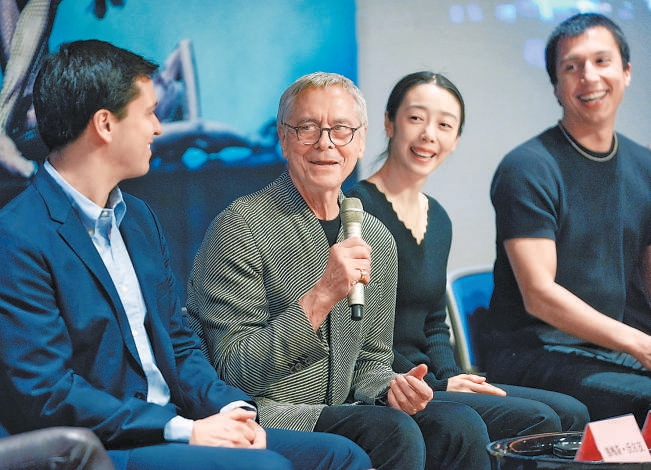 編舞大師諾伊梅爾(左二)來(lái)到國(guó)家大劇院。 北京日?qǐng)?bào)記者 方非攝