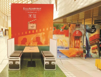 在陸家嘴百麗宮影城的主視覺海報前,一桌二椅皆成實景,影迷可以入內(nèi)拍照留念,也可在此交談、小憩。 上海國際電影節(jié)供圖