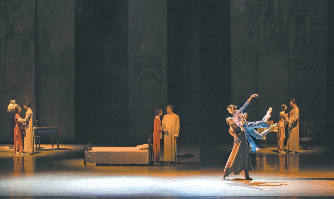 《永不消逝的電波》是韓真、周莉亞這對“舞壇雙子星”較早“出圈”的舞劇,在觀眾心中留下了很多經(jīng)典舞段。十余位身穿旗袍、手持蒲扇的女舞者,在《漁光曲》的旋律中曼妙起舞,浸透老上海風(fēng)情;與之產(chǎn)生強(qiáng)烈對比的是,披著黑色斗篷的特務(wù)在冷雨夜展開驚心動魄的追捕;李俠與蘭芬從假扮夫妻到發(fā)展為真正的愛人,幾對舞者的雙人舞同臺綻放。這些片段時常在舞蹈愛好者腦海中盤旋。