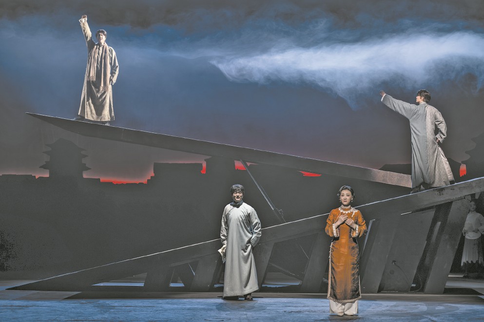 “青春是混沌初開,青春是綻放花苞”,《延年和喬年》序幕中的詠嘆奠定了作品浪漫主義的色彩。黃梅戲唱腔質樸流暢,《延年和喬年》并沒有選擇用高亢激昂的曲風來演繹革命題材,而是從劇種特色出發(fā),注重刻畫兄弟兩人的精神世界和情感故事。“延喬兄弟對于安慶來說,不僅是革命者,更是這座城的兒女,這里的人們對于他們有著深厚的愛戴和敬仰。所以在創(chuàng)作之初,我就決定一定要寫情,以情動人,在情之中尋找立意,這是創(chuàng)作的根本?!本巹∮鳂s軍說。