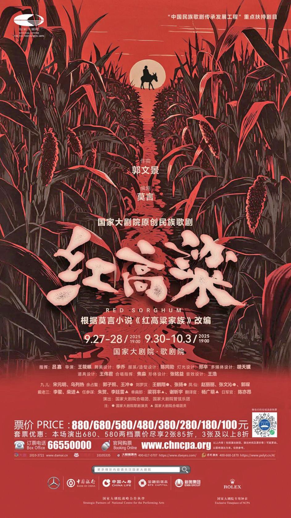 為大力弘揚(yáng)英雄主義、愛國主義,在2025年紀(jì)念中國人民抗日戰(zhàn)爭暨世界反法西斯戰(zhàn)爭勝利80周年之際,國家大劇院隆重推出原創(chuàng)民族歌劇《紅高粱》,即將于9月27日至10月3日迎來世界首演。作為國家大劇院創(chuàng)作推出的第23部原創(chuàng)歌劇,該劇以文學(xué)經(jīng)典的全新舞臺呈現(xiàn),歌頌永恒熾熱的民族精神。