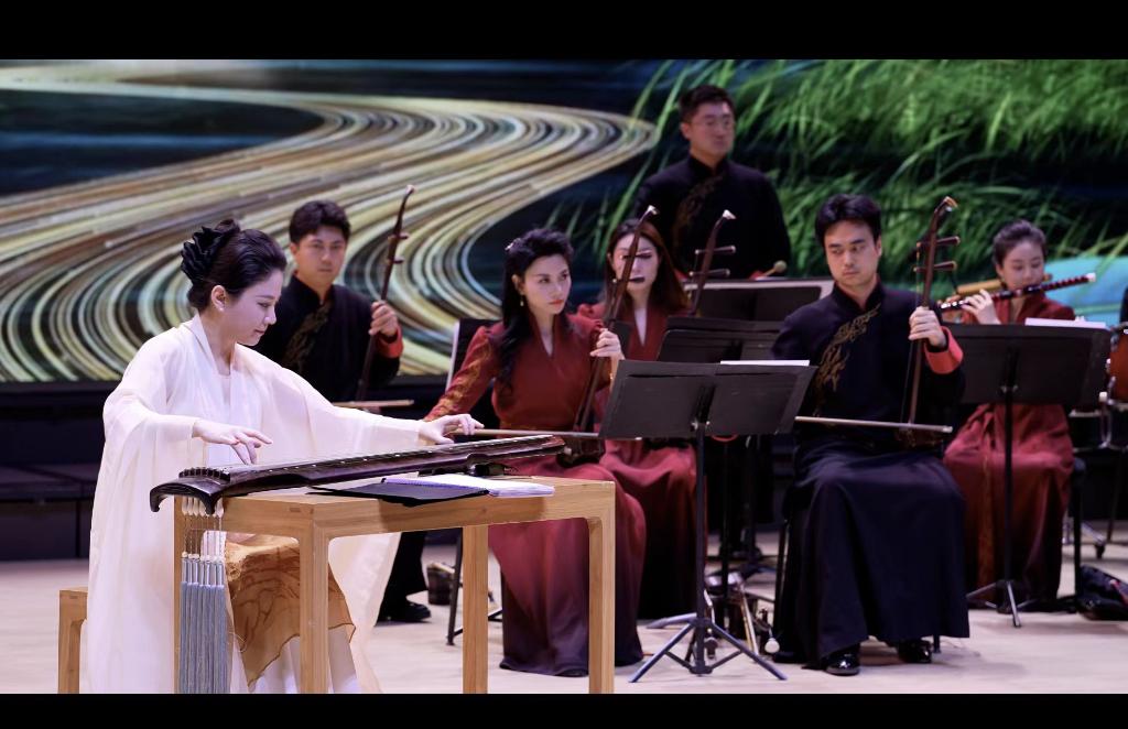 音樂會上,復(fù)刻春秋古制的古琴與珍稀老琴同臺亮相。古琴演奏家路寧攜手中央民族樂團(tuán)演奏家們,以《源》《神游》《清泠》《醉枕石》《云水吟》等8首全新編創(chuàng)作品為紐帶,讓古琴清微淡遠(yuǎn)的音色與大運河“流動史詩”的氣質(zhì)深度相融,完成跨越時空的對話。