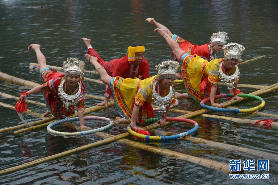 1月1日,“獨(dú)竹漂”愛好者在花溪河上表演水上高難度平衡動(dòng)作。 2016年元旦,在貴陽市花溪公園平橋河段舉行的貴陽市第31屆冬泳表演活動(dòng)中,數(shù)十名“獨(dú)竹漂”愛好者在花溪河上腳踏漂浮的竹竿,表演“金雞獨(dú)立”、轉(zhuǎn)身平衡等高難度動(dòng)作,讓觀眾大飽眼福。新華社發(fā)(秦剛 攝)