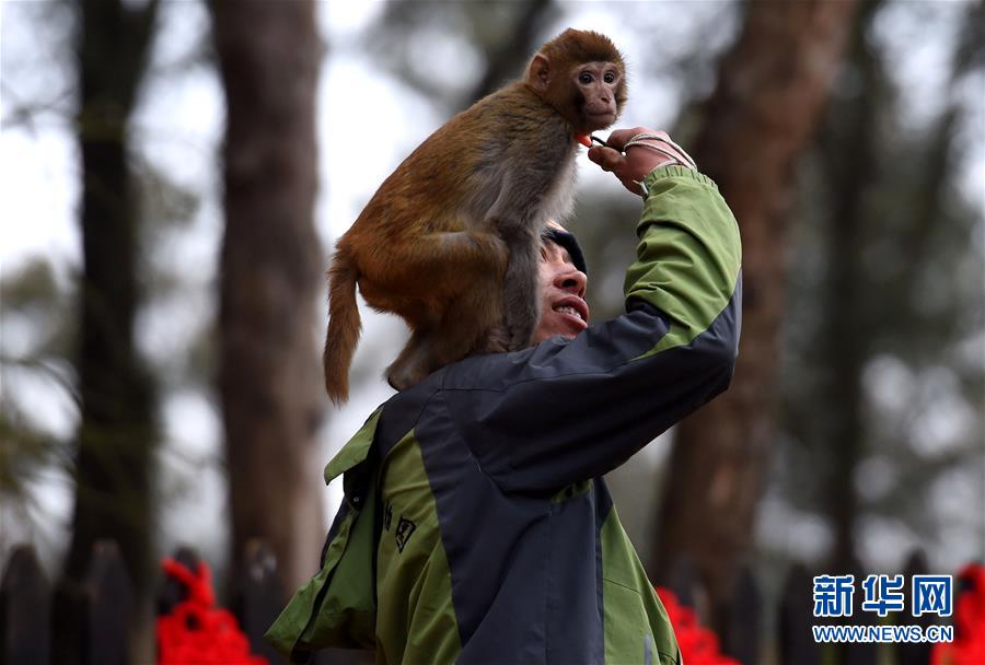 2月1日,剛出生的小猴子在馴養(yǎng)員手中“嬉戲”。為喜迎即將到來的農歷猴年,云南野生動物園舉行“萌猴”迎“猴年”活動,讓動物園的猴子與游客近距離接觸。 新華社記者 藺以光 攝