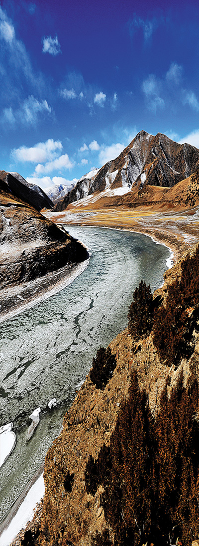 由于地處高原,通天河的身旁除了它滋養(yǎng)過的子民,便極少再有外人來此,因而此地的生態(tài)環(huán)境還保持著原來的模樣。走在河邊向前望去,遠(yuǎn)處是崇山峻嶺,近處是大河奔騰,無限的美景讓人感到無比愜意。彎下腰來坐在岸邊,靜靜地看著河水流淌,眼前的景象與《西游記》中的描寫有些相似,渾濁的河水翻滾著浪花。在河道中疾行而過,不禁讓人心驚膽戰(zhàn)。
