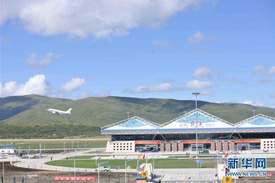 位于四川省阿壩藏族羌族自治州紅原縣的阿壩紅原機場(2014年8月28日攝)。紅原縣是以“紅軍長征走過的草原”命名的地方。80年前,這里的天氣變化無常,頃刻雷電滾滾、頃刻暴雨傾盆,紅軍走進這片遍布沼澤的草原,不少人再沒有走出來。 “紅軍不怕遠征難,萬水千山只等閑?!遍L征譜寫了一曲人類征服自然的凱歌,峽谷激流、雪山草地、物資匱乏、生命禁區(qū),這一切都不能阻擋紅軍前進的步伐。80年過去,滄海桑田,紅軍長征走過的荒郊野嶺,如今樓宇林立,欣欣向榮;徒步翻越的大山、攻克的關隘、沼澤遍布的草地、泅渡的河流,修起了通暢快捷的公路和大橋……長征之路發(fā)生了翻天覆地的變化,昔日的艱難險阻正漸漸變成康莊通途。新華社記者江宏景攝