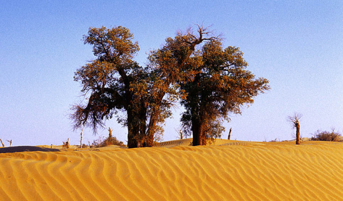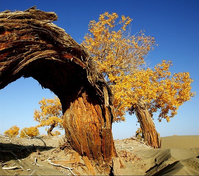 巴州旅游局局長馬彥成說, 由于胡揚具有驚人的抗干旱、御風沙、耐鹽堿的能力,能頑強地生存繁衍于沙漠之中,因而也被人們贊譽為“沙漠英雄樹”。巴州輪臺縣羅布人村寨、羅布湖、及若羌縣的阿拉干沿途景色都非常迷人,希望游客到此賞游,將會領(lǐng)略到不一樣的美麗風光。