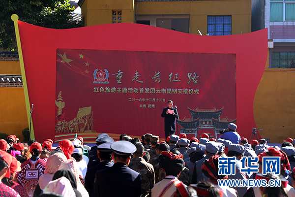 新華網(wǎng)昆明12月13日電(記者 韓攀)12月12日,“重走長征路”紅色旅游主題活動首發(fā)團云南昆明交接儀式在尋甸柯渡丹桂村紅軍長征柯渡紀(jì)念館舉行。本次主題活動由國家旅游局主辦,是在中國工農(nóng)紅軍長征勝利80周年之際,通過紀(jì)念紅軍長征歷史、緬懷先烈,宣傳長征精神,推廣紅色旅游線路,同時充分展示長征沿線地區(qū)旅游業(yè)及經(jīng)濟發(fā)展成就。