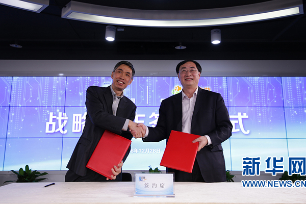 同程旅游副總裁李志莊與新華網(wǎng)常務(wù)副總裁魏紫川代表雙方簽約