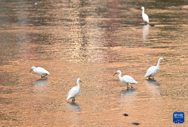 11月19日,白鷺在湖北省宣恩縣城貢水河覓食。新華社發(fā)(宋文攝)