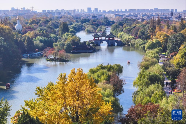 11月19日拍攝的江蘇揚州瘦西湖風(fēng)景區(qū)(無人機照片)。