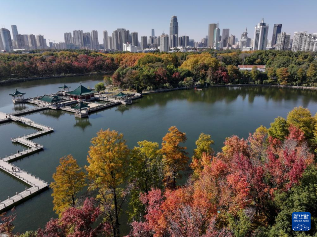 11月18日在湖北省武漢市東湖風(fēng)景區(qū)拍攝的初冬景色(無人機照片)。新華社發(fā)(趙軍攝)