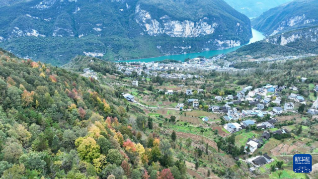 重慶市酉陽土家族苗族自治縣龔灘鎮(zhèn)層林盡染(11月18日攝,無人機照片)。新華社發(fā)(邱洪斌攝)