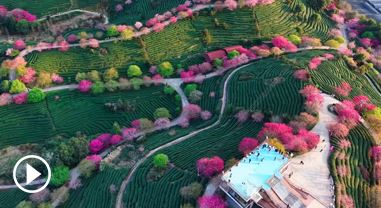 近日,福建漳州臺品櫻花園的櫻花悄然盛放,漫山遍野的櫻花與層層疊疊的茶山交相輝映,粉紅花海點綴翠綠茶壟,構成一幅生機勃勃的春日畫卷。