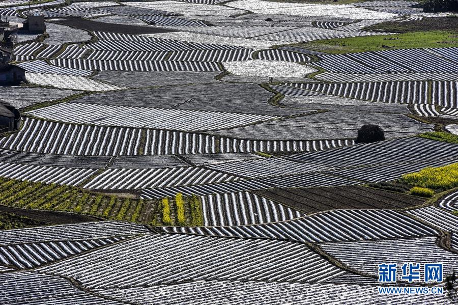 這是2月28日在廣西羅城縣喬善鄉(xiāng)板團(tuán)村拍攝的田園景色。春耕時(shí)節(jié),廣西河池市羅城仫佬族自治縣氣溫回升,當(dāng)?shù)剞r(nóng)民搶抓農(nóng)時(shí),起壟耕種。 新華社發(fā)(韋如代 攝)