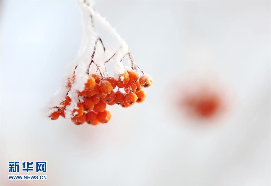 3月2日,在黑龍江省黑河市,幾顆野果在霧凇中顏色更加醒目。當(dāng)日,位于黑龍江省北部的黑河市出現(xiàn)霧凇景象。 新華社發(fā)(劉松 攝)