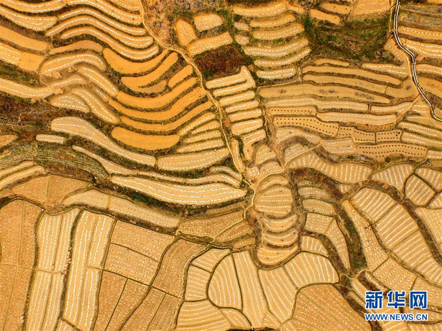 這是3月14日航拍的廣西百色市右江區(qū)永樂鎮(zhèn)西北樂村西瓜梯田景色。時下,廣西百色市右江區(qū)永樂鎮(zhèn)西北樂村進入西瓜種植護理季節(jié),地膜縱橫交錯的層層瓜田和壯族村落構(gòu)成一幅美麗的田園畫卷。百色市右江區(qū)永樂鎮(zhèn)是廣西有名的西瓜之鄉(xiāng),全鎮(zhèn)種植西瓜1.5萬畝,年產(chǎn)西瓜2.8萬噸。新華社記者 黃孝邦 攝