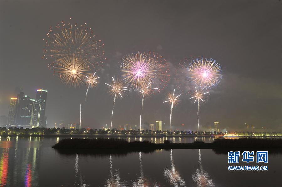 2017年1月1日夜晚,長沙橘子洲附近湘江上空綻放絢麗焰火。當(dāng)晚,湖南長沙橘子洲舉行焰火晚會(huì)慶祝新年到來。整場(chǎng)焰火晚會(huì)主題為“多彩星城、魅力長沙”,焰火燃放時(shí)間約20分鐘。 新華社記者 龍弘濤攝