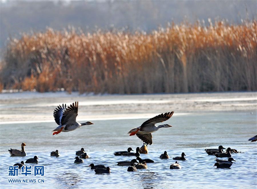 水鳥飛翔在拉魯濕地上空(1月7日攝)。入冬以來,位于拉薩城邊的拉魯濕地國家級(jí)自然保護(hù)區(qū)候鳥增多,斑頭雁、赤麻鴨、野鴨等數(shù)十種候鳥在這里過冬。拉魯濕地國家級(jí)自然保護(hù)區(qū)海拔3600多米,總面積12.64平方公里,是中國海拔最高、面積最大的城市天然濕地,被譽(yù)為“拉薩之肺”。新華社記者 張汝鋒 攝