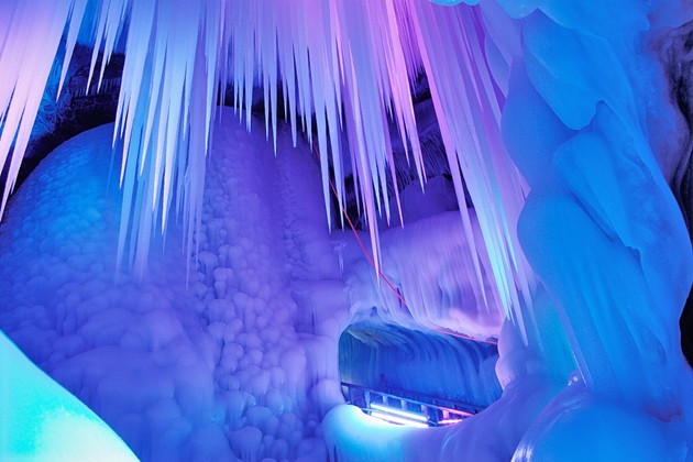 專家們稱,該冰洞位列全國一萬多個洞穴中僅有的九個冰洞之首。洞內(nèi)制冷機制最強、冰儲量最多,現(xiàn)開發(fā)近百米。分成上下五層,看冰洞須穿棉衣、戴手套,小心翼翼地游覽。通過鉆冰洞,下冰樓梯,過冰棧,可到各層觀光。每層可容納數(shù)十人。洞內(nèi)四周全是冰。由冰形成的冰柱、冰簾、冰瀑、冰花、冰佛、冰床、冰鐘、冰人、冰菩薩等,千奇百怪、不一而足。洞內(nèi)大大小小的景致或玲瓏剔透,或晶瑩奪目,或婀娜多姿,或雄偉壯麗,無不令人驚嘆,堪稱一個冰的絕妙世界。
