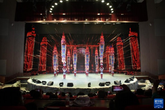 8月12日,在河北省滄州市吳橋縣江湖大劇院,游客們觀看雜技表演。