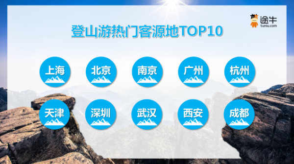 途牛截至目前最新預(yù)訂數(shù)據(jù)顯示,2023年以來,選擇登山游相關(guān)旅游產(chǎn)品的用戶出游人次占比達(dá)29%,是途牛用戶最熱衷的出游主題之一。其中,上海、北京、南京、廣州、杭州、天津、深圳、武漢、西安、成都等地用戶對登山游擁有更高的熱情。