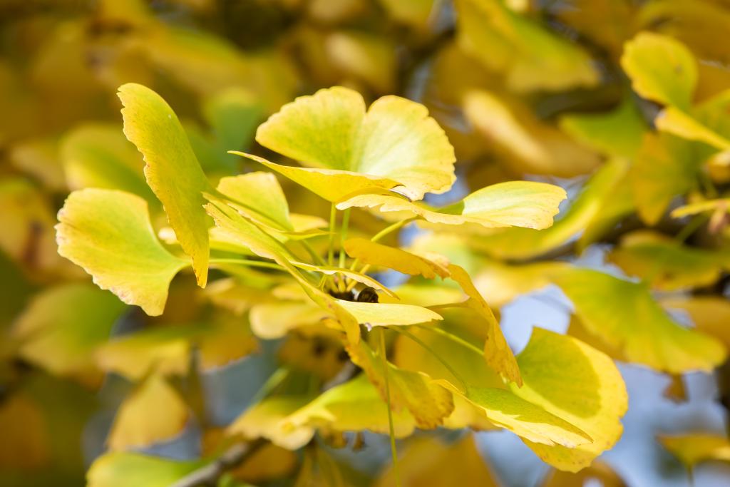 在甘肅省隴南市徽縣嘉陵鎮(zhèn)田河村,古銀杏樹(shù)葉呈現(xiàn)黃綠漸變色(10月20日攝)。