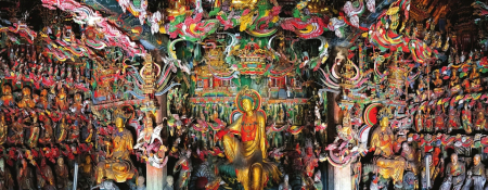 平順縣金燈寺順山巔走勢而開鑿,跨越明弘治到嘉靖,歷時(shí)60余年。其北依陡崖,南臨深谷,由東而西七個(gè)院落,各院均有殿堂,自成一體。