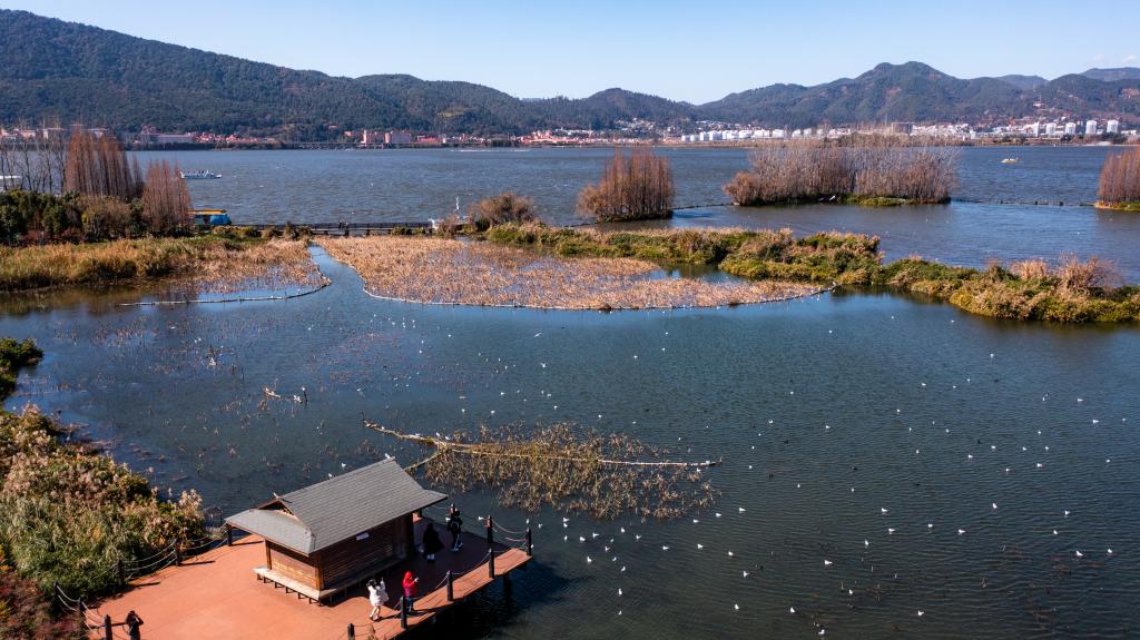 湖面碧波蕩漾,天空白云朵朵,紅嘴鷗振翅翩飛……“高原明珠”滇池正以生態(tài)和諧、生機盎然、鄉(xiāng)愁永駐的面貌呈現(xiàn)在世人面前。昆明市民感嘆道:滇池的水越來越清了,生態(tài)環(huán)境越來越好了。