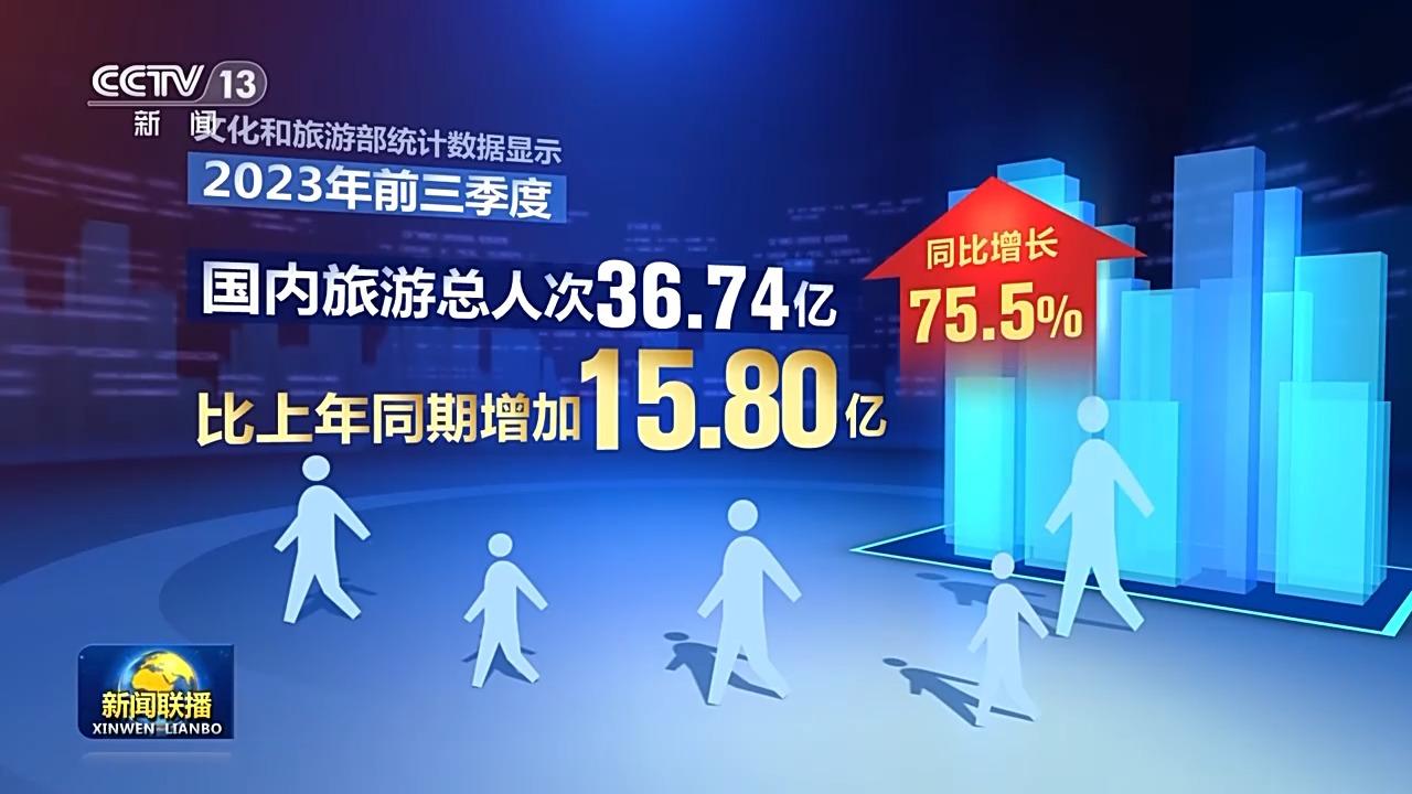 文化和旅游部統(tǒng)計(jì)數(shù)據(jù)顯示,2023年前三季度,國(guó)內(nèi)旅游總?cè)舜?6.74億,比上年同期增加15.80億,同比增長(zhǎng)75.5%。2023年前三季度,居民國(guó)內(nèi)出游總花費(fèi)3.69萬億元,比上年增加1.97萬億元,增長(zhǎng)114.4%。預(yù)計(jì)在今年12月至明年春節(jié)期間,冰雪游、出入境旅游等消費(fèi)將迎來新高。