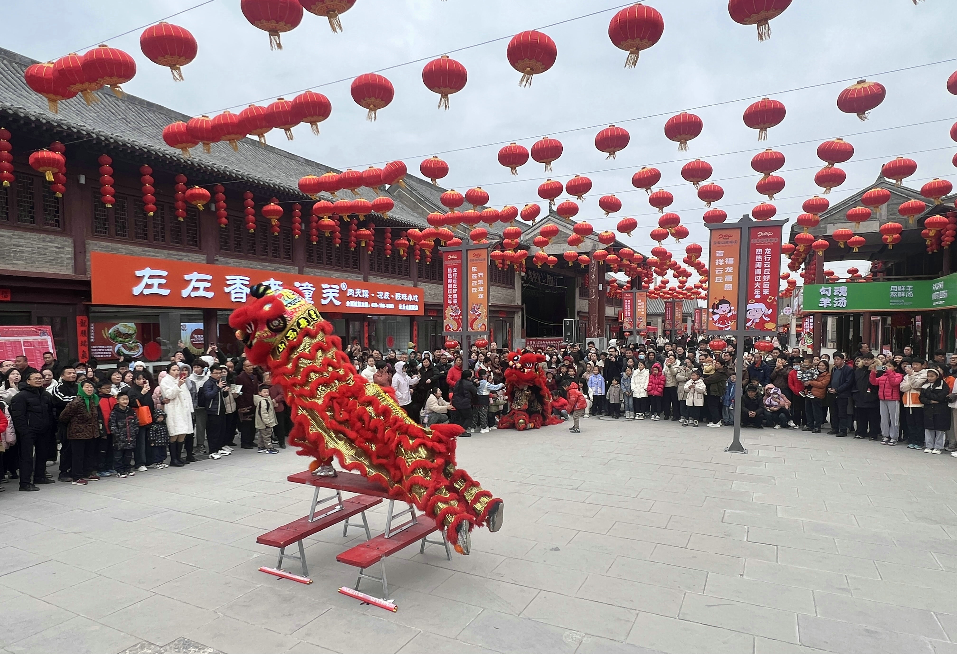 云丘山景區(qū)的舞獅鬧新春,年味濃濃。(圖片均為王李榮攝)