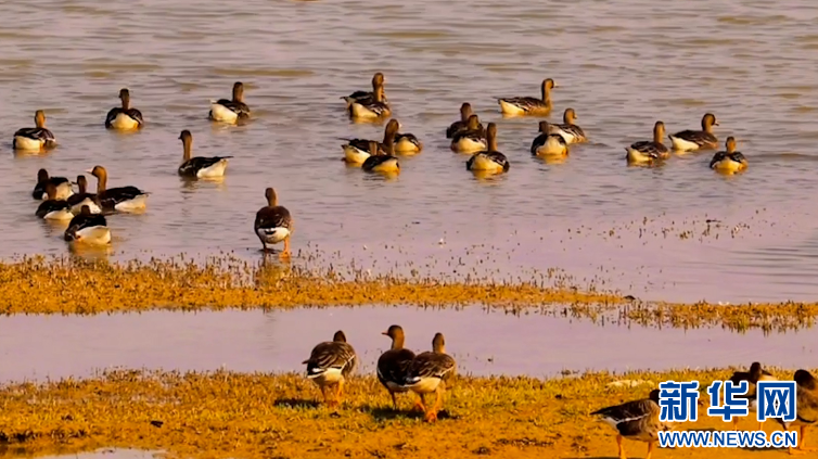 近日,眾多候鳥(niǎo)仍在菜子湖濕地流連。新華網(wǎng)發(fā)(陳春麗 攝)