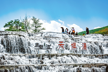 5月22日,平順縣赤壁懸流景區(qū)游人如織。該景區(qū)依濁漳河而行,全長(zhǎng)12公里,峽谷內(nèi)蜿蜒曲折、云霧繚繞,獨(dú)具特色的丹霞地貌、瀑布飛流,吸引周邊游客前來(lái)打卡游玩。
