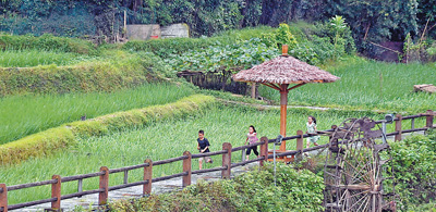 圖為三江侗族自治縣林溪鎮(zhèn)平巖村,小朋友奔跑在滿目綠意中。新華社記者 黃孝邦攝