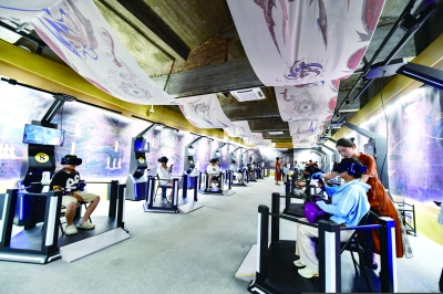 7月22日,游客線下體驗“尋境敦煌——數(shù)字敦煌沉浸展”。 “尋境敦煌”綜合運用虛擬現(xiàn)實、三維建模、游戲引擎的物理渲染和全局動態(tài)光照等新技術,高精度立體還原了莫高窟第285窟。游客戴上VR眼鏡,不僅可以零距離觀賞壁畫、360度自由探索洞窟細節(jié),還能“飛升”到窟頂,身臨其境參與壁畫故事情節(jié),沉浸式感受敦煌文化的魅力。 新華社記者 郎兵兵/攝