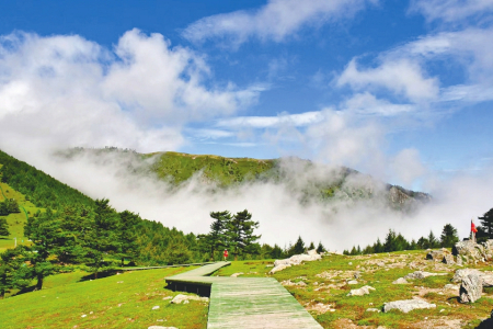 云頂山山勢(shì)險(xiǎn)峻、風(fēng)光秀麗,因山頂與云天相接而得名。這里有自然形成的彌佛山、城墻巖、虎頭石、通天龜、八戒看山、悟空出世等美景,林中有褐馬雞、金錢豹、黑鸛、金雕等國(guó)家一級(jí)保護(hù)動(dòng)物,生長(zhǎng)著黨參、秦艽、銀花、冬花、白芍、遠(yuǎn)志、柴胡等多種野生中藥材。