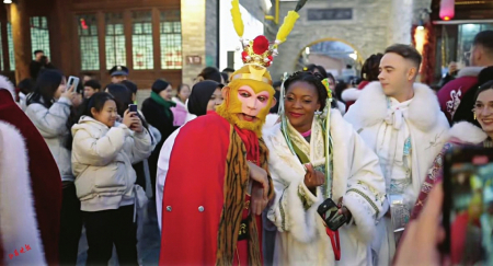 2024年12月4日,中國的傳統(tǒng)節(jié)日春節(jié)正式列入聯(lián)合國教科文組織《人類非物質(zhì)文化遺產(chǎn)代表作名錄》,標志著春節(jié)這一中國文化瑰寶走向全球,成為全人類共同的文化遺產(chǎn)。本次活動中,現(xiàn)場也多了許多身著中華傳統(tǒng)服飾的“洋面孔”。這些來自世界各地的外籍友人身著漢服,記錄在忻州古城的新奇體驗,從國際視角感受山西年俗文化的獨特魅力,進一步推動了“歡樂中國年地道山西味”這一山西文旅IP品牌國際化傳播。