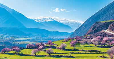 東風著意,先上小桃枝。每年3月至4月,被稱為“雪域江南”的西藏自治區(qū)林芝市,就成了桃花的海洋。奔流的江水邊,碧綠的青稞地里,高聳的雪山下,一樹樹嫣紅如醉霞緋云般開放。不遠處云杉林蒼翠茂密,山頂潔白的積雪平添了清幽。當大自然再次將繽紛色彩傾瀉而下,高原的春天便如約而至。