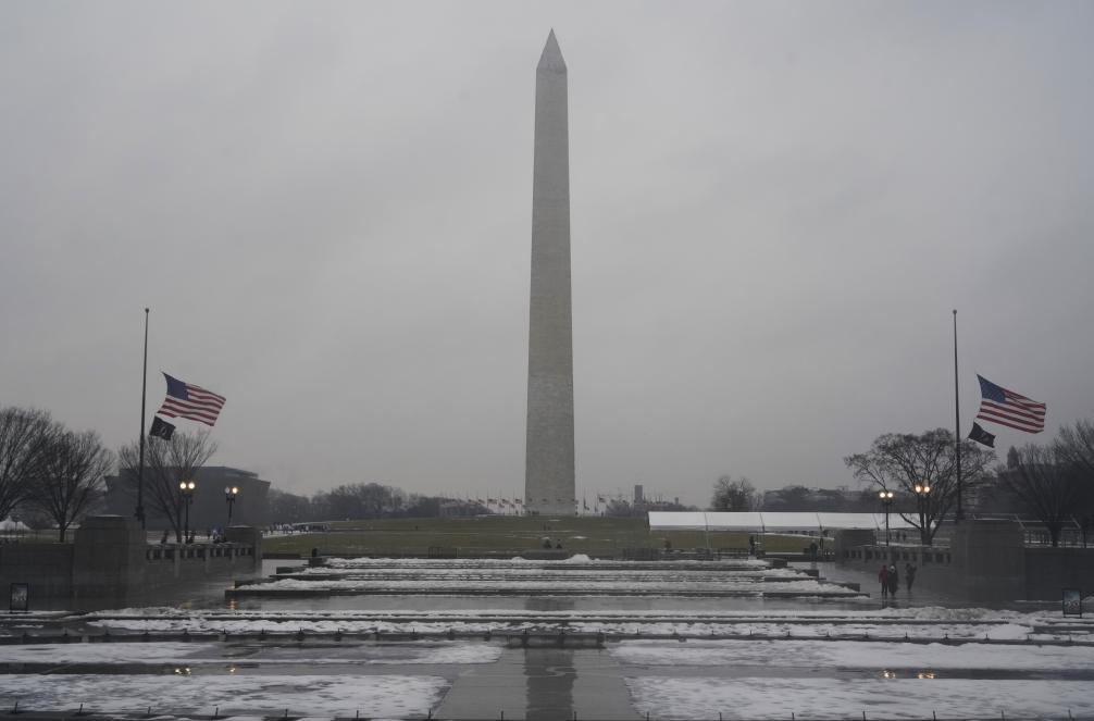 這是1月19日在美國(guó)華盛頓拍攝的華盛頓紀(jì)念碑。新華社記者吳曉凌攝