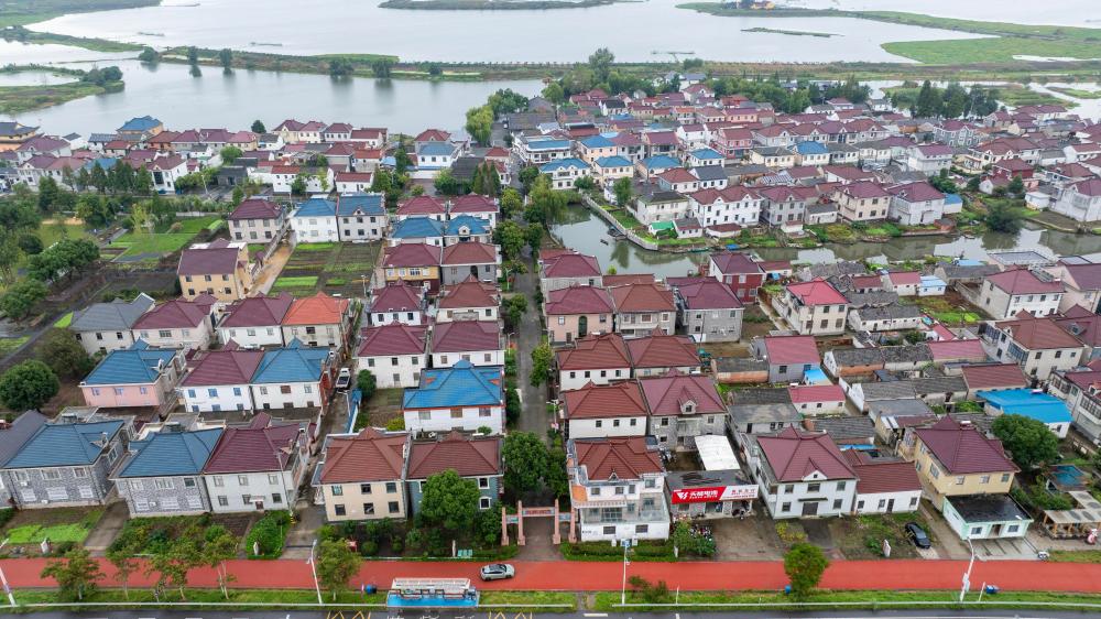 ??這是2025年10月17日拍攝的江蘇省泰州市興化市千垛鎮(zhèn)東羅村(無人機(jī)照片)。新華社發(fā)(周社根 攝) 從垛田花海到古街文脈 從四季風(fēng)物到非遺活態(tài) 世界“最佳旅游鄉(xiāng)村”東羅 正以“水、田、林、垛”的生態(tài)基底 與其人文積淀 邀你共赴一場(chǎng)跨越四季的“文旅盛宴”