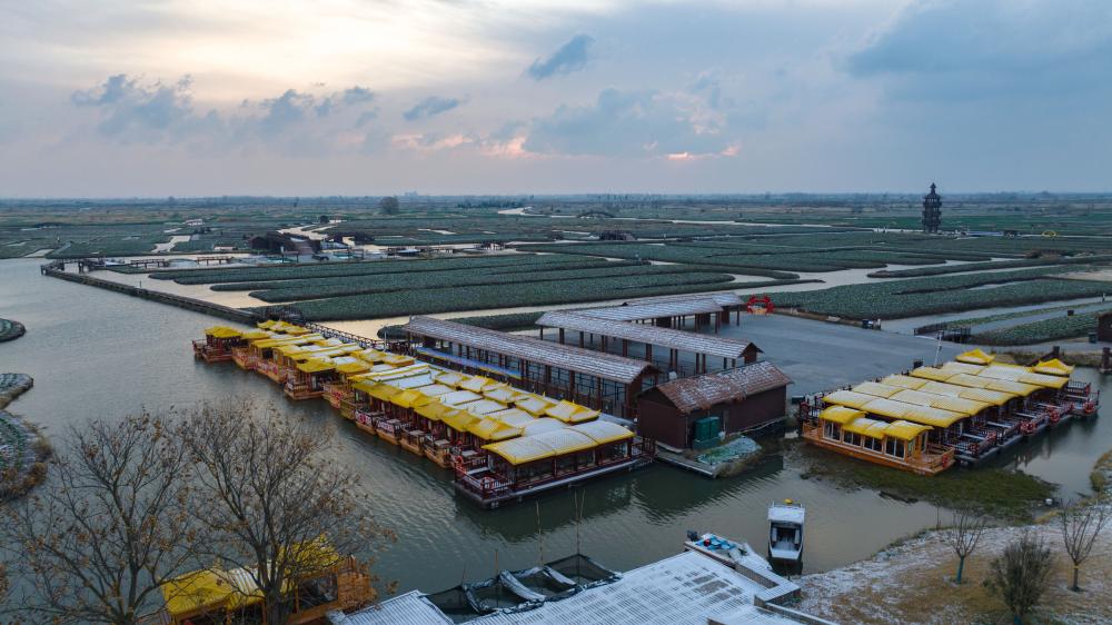 ??2025年10月13日,游客在江蘇省興化市千垛景區(qū)賞菊游玩(無人機(jī)照片)。新華社發(fā)(周社根 攝) 一號(hào)水路的蘆花隨風(fēng)搖曳 如白雪覆蓋水面 古樸的沙溝古鎮(zhèn)燈籠高掛 約上三五好友飲一杯老茶館里的暖茶 冬日的寒意便在這靜謐之中被驅(qū)散了