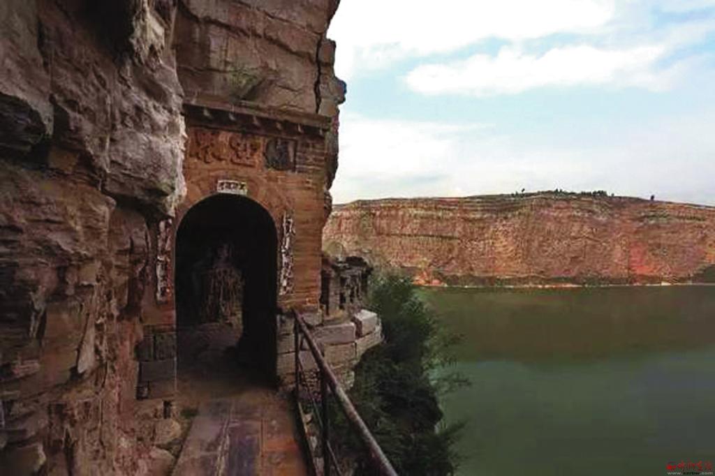 沿著石壁繼續(xù)下行十多米,眼前出現(xiàn)一條羊腸小道,小道中途還有座獨(dú)木橋,橋的一端建有石門,門上刻“懸空界”三字,穿過石門便是聞名天下的彌佛洞。彌佛洞建在黃河峽谷絕壁上的一個(gè)天然石窟之中,洞內(nèi)怪石倒垂,犬牙交錯(cuò),人至其中如入虎口。從石洞后壁登23級石階,又有一石窟,高約兩丈,內(nèi)供佛像一尊。彌佛洞憑借雄渾壯觀的自然景觀給人們留下深刻印象,中國當(dāng)代著名畫家吳冠中先生觀后稱其為“黃河上的一大奇跡景觀”。