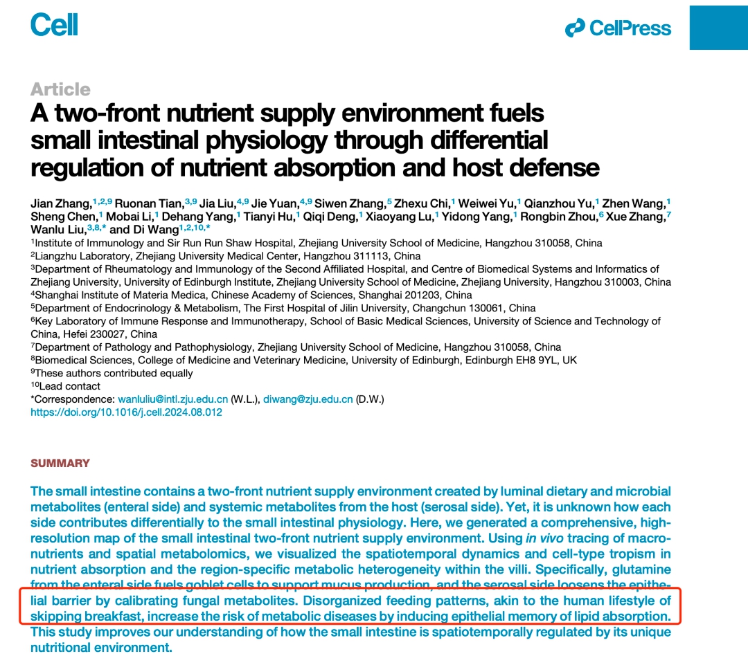 早晨,鬧鐘一響,匆匆洗漱,不少人就直奔公司去了?!皼]時間,早午餐合成一頓吃”,這樣的場景是不是很熟悉? 在很多人看來,早餐無關(guān)緊要,甚至有人認(rèn)為不吃早餐能有助減肥,事實(shí)真的是這樣嗎? 最新研究顯示,不吃早餐可能會讓腸道變得越來越愛吸收脂肪,不僅可能讓你減肥越減越胖,還可能增加心血管疾病發(fā)生風(fēng)險提高。 不吃早餐小腸會加速吸脂? 日前,浙江大學(xué)醫(yī)學(xué)院附屬邵逸夫醫(yī)院、浙江大學(xué)愛丁堡大學(xué)聯(lián)合學(xué)院、中國科學(xué)院上海藥物研究所的研究團(tuán)隊(duì),在頂尖學(xué)術(shù)期刊《細(xì)胞》(Cell)上合作發(fā)表一篇論文表明,不吃早餐的這種飲食習(xí)慣會改變小腸對營養(yǎng)物質(zhì)的吸收方式,從而會增加代謝性疾病的風(fēng)險。