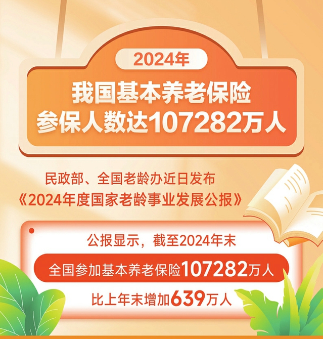 2024年 我國基本養(yǎng)老保險(xiǎn)參保人數(shù)達(dá)107282萬人