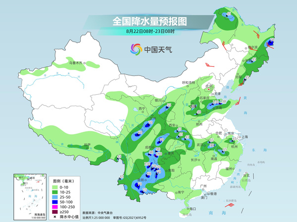 后天,東北地區(qū)中南部、華北南部、黃淮大部、四川盆地、云南北部、華南南部沿海、海南島、西藏東南部等地部分地區(qū)有中到大雨,其中,吉林東南部、遼寧中東部、四川盆地西南部、海南島中東部等地部分地區(qū)有暴雨或大暴雨。